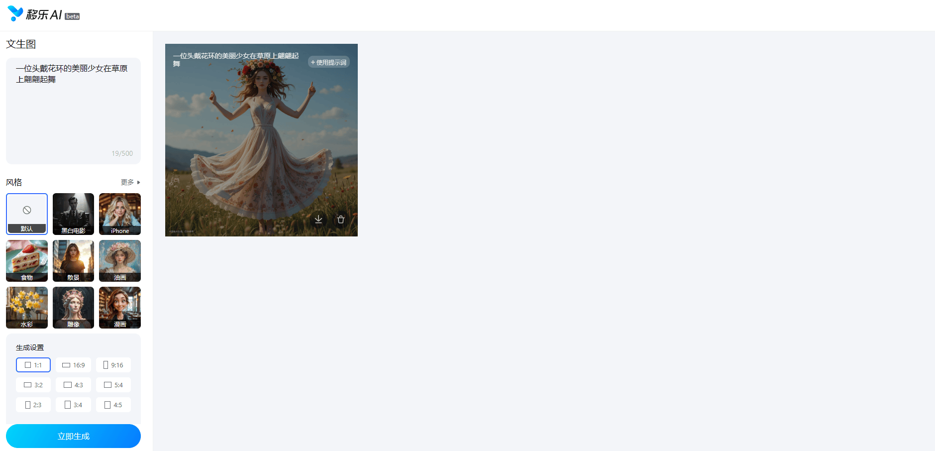 移乐文生图是移乐AI网坐目前从打“明星产物”。