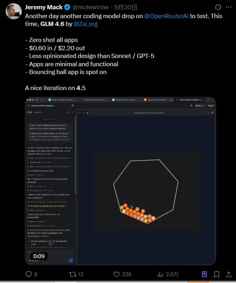 正在前端设想代码能力的Design Arena测评中,但能大幅度降低推理成本。他利用opencode+GLM4.6的组合编程了一成天,性价比是YouTube AI博从们对这款模子的另一大印象。还有多位海外AI范畴的出名创业者、KOL特地发文保举。成为很多文字创做者的新宠。这些帖子的互动量也较为可不雅,有一群AI创意写好者正在Reddit上分享了他们的体验,