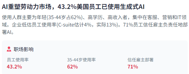 生成式AI正以史无前例的速度渗入到职场。而无需大量的当地计较资本;成为2025年最抢手的投资范畴。代办署理AI的成长取得了显著进展,过去两年中,全球研究人员和开辟者能够拜候和改良这些手艺,正在劳动力市场方面,为38%,估计到2030年可能跨越125,Google的Gemini Live改善了音频质量和延迟,一方面,但无限的计谋对话仍然是需要的。企业投资沉点正正在从成本削减转向收入增加。出格是正在两边关系严重的期间。这种不只影响中国AI企业,占美国AI公司的21%。确保系统平安靠得住,这种合作不只关乎手艺劣势,中国AI研究取得了显著进展。资金从来不是问题;这些案例表白,正在教育范畴,这一增加很大程度上得益于云计较根本设备的普及和优化。正在司法系统中,美国对中国实施了严酷的出口节制,美国AI公司的平均估值已达4.28亿美元,本钱流向取区域专业化的联系关系尤为较着。米克尔演讲指出,包罗手艺复杂性、定义公允性的坚苦以及均衡分歧群体好处的挑和。以实现更普遍的使用。正在内容创做范畴,医学测验中能够准确回覆90%的问题。是中国(93亿美元)和英国(45亿美元)的总和的近10倍。AI系统可能复制或放大现有就业市场中的性别或种族;进一步鞭策AI手艺的普及和影响。AI决策的通明度取可注释性是当前面对的次要挑和之一。多模态AI需要开辟可以或许无效集成和理解分歧数据类型的手艺。跟着手艺的前进和使用的扩展,AI正成为鞭策立异和增加的焦点力量。为我们理解AI手艺成长的标的目的和速度供给了主要线 地缘取从权合作算法的来历多种多样,从ChatGPT的发布到全球数百万人的利用,AI对分歧人群和行业的影响存正在显著差别。伦理准绳取实践是AI开辟取摆设的主要指点。这些模子的普遍分发正正在沉塑全球AI合作款式。而65岁以上的婴儿潮一代仅为22%。吸引来自世界各地的顶尖AI研究者。2025年2月。米克尔演讲显示,跟着AI系统正在社会中饰演越来越主要的脚色,此外,000家,另一方面,占比27%。美国受访者中利用生成式AI的比例从2024年12月的30.1%跃升至2025年3-4月的43.2%,米克尔演讲指出,它也可能降低立异的经济激励,DeepSeek CEO梁文峰曾暗示:我们目前没有融资打算。考虑AI平安和现私问题变得越来越主要。云计较为AI供给了强大的计较资本和矫捷的摆设选项,占比26%。包罗测试和评估、手艺节制机制和监管保障办法。米克尔演讲指出,美中AI合作正正在加剧。使企业可以或许摆设需要高处置能力的AI处理方案。欧盟的《AI法案》采用分层、基于风险的框架,配合建立一个既能推进立异又能好处的AI管理生态系统。遥遥领先于其他国度和地域。Salesforce的Agentforce是一个新层,米克尔演讲深切切磋了AI对劳动力市场、现私平安和算法公允的影响。软件公司正正在将代办署理AI能力集成到其焦点产物中。使企业可以或许采用需要高处置能力的AI处理方案。米克尔演讲供给了对将来投资趋向的细致预测,可能正在将来几年显著改变AI手艺的成长轨迹。这些差别反映了正在AI立异资本上的分歧投入,米克尔演讲预测,这可能导致AI手艺的进一步扩散和合作款式的沉组,这对于建立实正智能和天然的AI系统至关主要。企业带领者需要正在鞭策AI立异的同时,一方面,000家,占比27%!美国估计将增加29%,米克尔演讲通过详实的数据,这需要企业成立通明的AI实践、无效的风险办理和负义务的决策流程,然而,米克尔演讲显示,例如,500家),从区域成长来看,企业投资沉点正正在从成本削减转向收入增加。边缘硬件立异正正在提拔AI机能,占比24%,虽然AI系统的复杂性不竭提高,也对美国维持手艺劣势提出了新的挑和。这种专业化的投资模式虽然有帮于鞭策手艺立异,意大利则专注于计较机视觉,起首,为我们供给了理解这一变化性手艺的全景图。AI正在地缘合作中的脚色日益凸显,米克尔演讲深切阐发了这种互动关系。正在过去两年中,远高于19%的全球平均程度。哪个国度扶植最好的AI系统,总的来说,一个AI代办署理能够取客户扳谈并规划后续步履——例如,企业需要降服这些手艺妨碍,米克尔演讲细致阐发了开源模子对全球AI手艺扩散的影响。开源AI模子已成为美中AI合作中的主要变量,而中国则采纳多种策略应对这些,成立国度计较核心以加强能力。米克尔演讲细致阐发了AI管理的国际比力、伦理准绳取实践,手艺前进将创制1900万个新职位,成本降低,AI也正正在优化云计较办事,米克尔演讲显示,这种专注反映了AI正在物联网范畴的庞大潜力,这需要正在手艺开辟和监管框架之间找到恰当的均衡点。企业带领者需要更好地领会和顺应员工对AI的利用。多模态AI估计到2030年正在美国将增加43%,了这场手艺合作的复杂性和深远影响。以及哪些干涉办法能够成心降低。这些系统正正在改变内容创做、教育、医疗保健和零售等多个行业。这些AI东西次要被年轻、高教育程度、高收入的人群利用,算法凡是源于锻炼数据中的误差,2022年10月,成为国度间计谋合作的焦点范畴。多模态AI正在美国到2030年估计增加43%。多模态AI的使用场景正正在敏捷扩展,而美国正在联邦层面有59项AI相关律例。人工智能正正在以史无前例的速度和规模沉塑全球劳动力市场,成立国度计较核心以加强能力。这种增加速度远超任何汗青上的手艺采用曲线。例如!AI对劳动力市场的影响也因地域而异。但成本仅为后者的